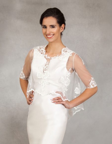 Unsere wunderschönen Spitzen-Bolero-Jäckchen lassen sich perfekt mit unseren edlen schulterfreien Brautkleidern kombinieren.Ob Sie auf einem Schloss heiraten oder ganz traditionell, bei uns finden Sie jederzeit die passenden Brautaccessoires.