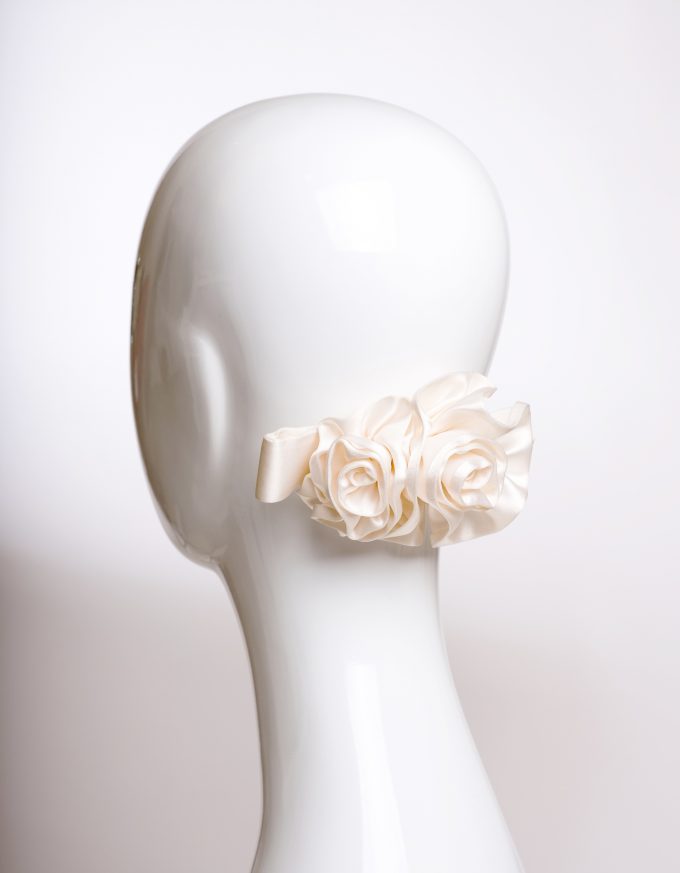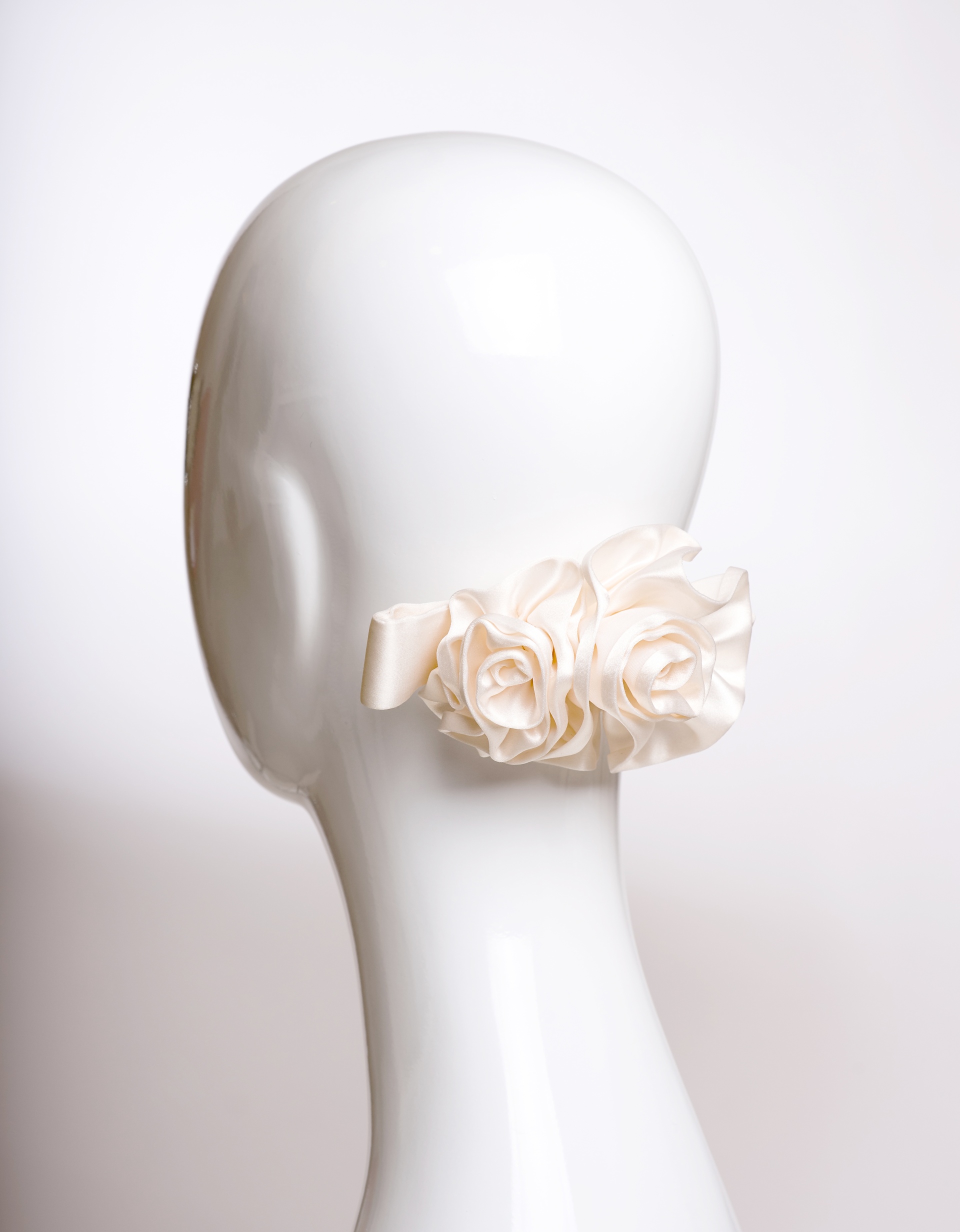 Wunderschöne, edle Haarschleife aus Seidensatin mit handgefertigten Stoffblumen.