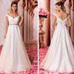 Die edlen Silhouetten bestechen aus klassischen Kleiderschnitten und durch atemberaubende Dekolletees sowie zweiteilige Braut-Looks wie Hose, Bodys und Rock Kombinationen.