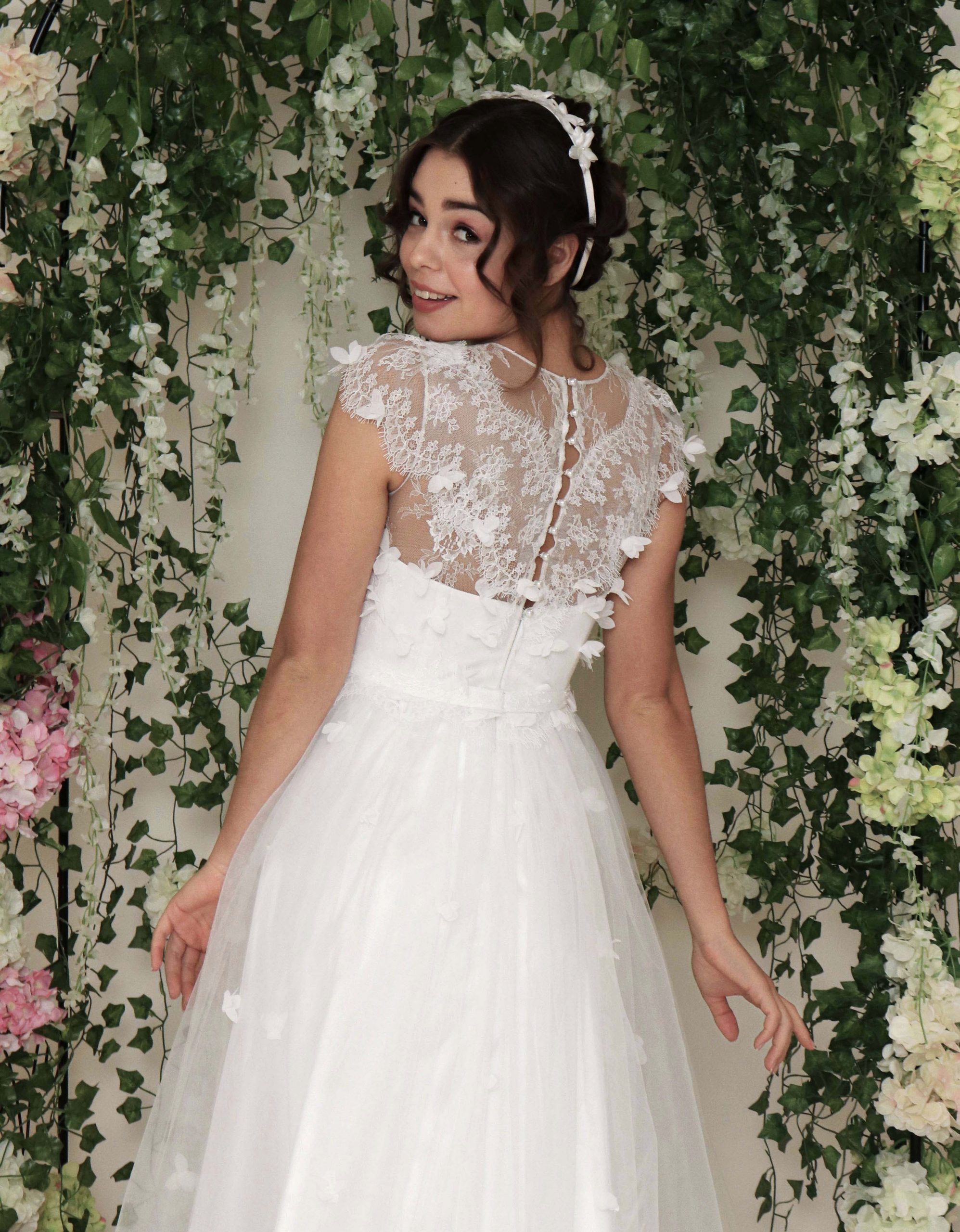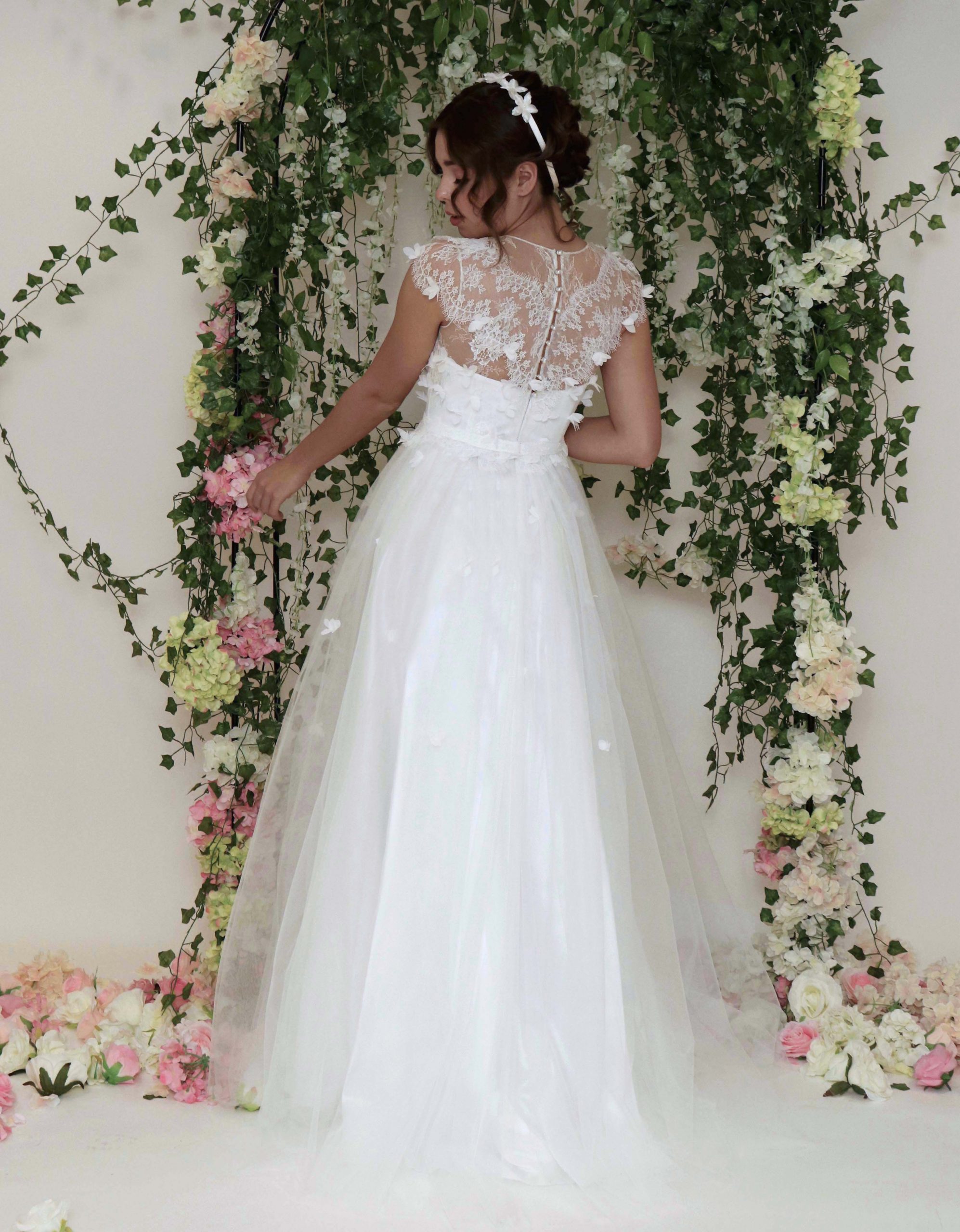 Prinzessin Brautkleid mit 3D-Floralen Applikationen Spitzenoberteil und Voluminösem Tüllrock.